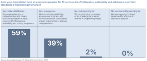 This is a significant area of risk for many. Our survey found that while 59% of firms have a fully implemented AI assurance program, over 40% remain exposed to regulatory scrutiny. Frameworks like the UK’s AI Assurance Roadmap signal a clear trend: firms must be able to show their work for the technology that informs their compliance decisions, and “ensure it is developed and deployed responsibly”.
