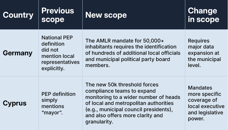 The AMLR explicitly introduces new thresholds for local and regional PEPs, ensuring greater scrutiny of officials who manage significant public funds and contracts.