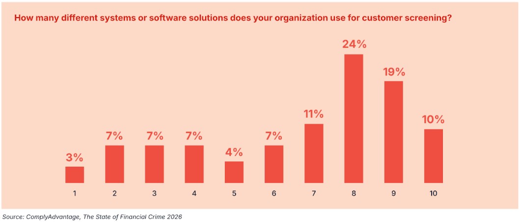 The “software sprawl” problem further complicates defense; despite 99% of firms agreeing that an integrated interface is essential, over half are still juggling 8 to 10 separate systems. This fragmentation creates “contextual blindness,” making it nearly impossible for analysts to build a cumulative picture of customer risk in real-time.