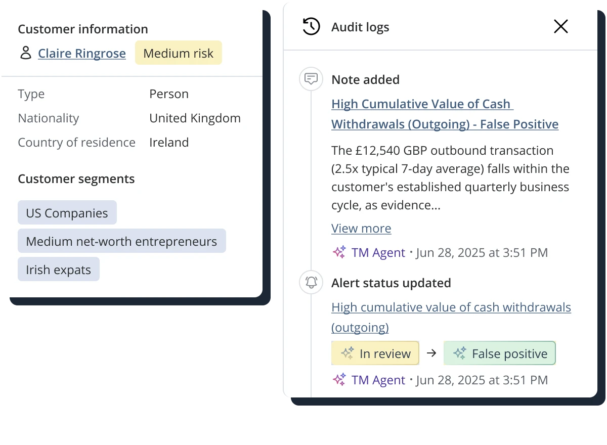 - Escalate high-risk cases with comprehensive, pre-written rationale notes or resolve low-risk noise autonomously.